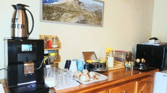 You can taste our various types of bread: whole grain bread, pastries, and homemade bread. There is cheese and ham, and for those who prefer sweet toppings: you can enjoy our homemade jams and also artisanal products from the region.