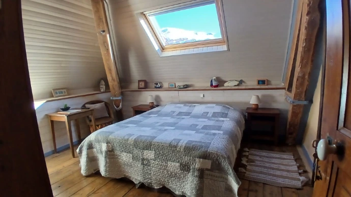 D’ici, on a une vue magnifique sur le village de Jausiers. Le nom de cette chambre est celle de la station de ski la plus connue de la vallée, mais le loup est aussi bien présent !